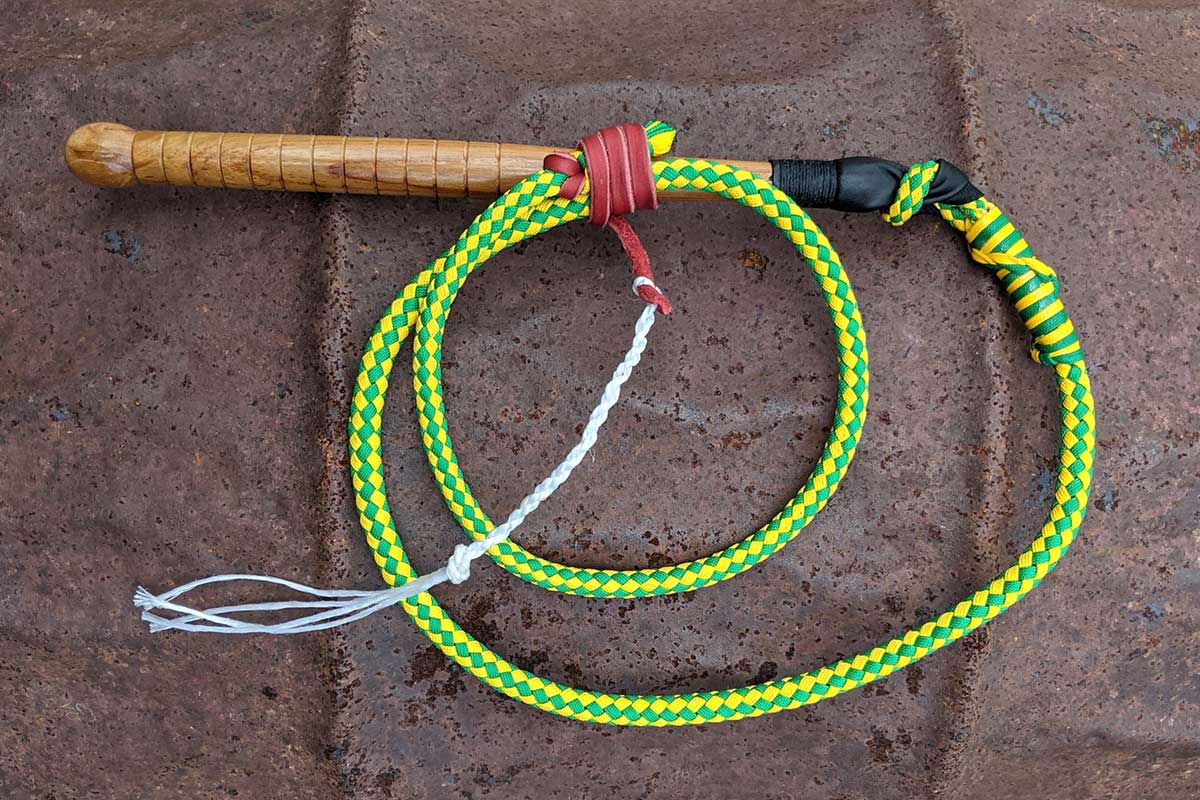 Cane or Hardwood Handle with a kangaroo keeper 14 inches long, Para Cord Thong, 4 foot in length, shot loaded. Great for use on a Quad Bike or for the kids to use.